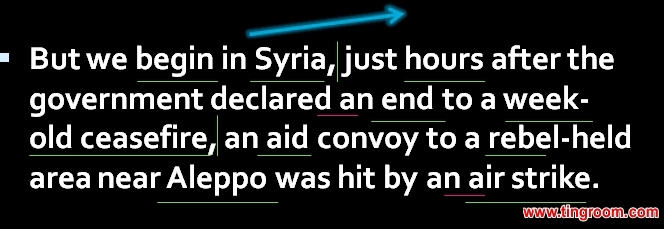But we begin in Syria, just hours after the government declared an end to a week-old ceasefire, an aid convoy1 to a rebel-held area near Aleppo was hit by an air strike.