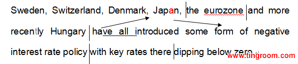模仿句子:Sweden, Switzerland, Denmark, Japan, the eurozone and more recently Hungary have all introduced some form of negative interest rate policy1 with key rates there dipping below zero.