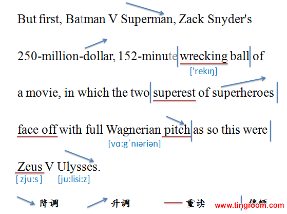 翻译:首先,我们来聊聊电影《蝙蝠侠大战超人》。这部由扎克·施耐德执导,斥资两亿五千万美元,时长152分钟的影片着实给人们带来了视觉震撼。片中两大顶尖超级英雄在颇具华纳影视风格的场景中巅峰对决,犹如希腊神话中宙斯与尤利西斯一般。