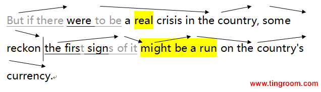 模仿句子:But if there were to be a real crisis in the country, some reckon the first signs of it might be a run on the country's currency.
