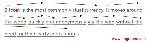 模仿句子:Bitcoin is the most common virtual currency. It moves around the world quickly and anonymously1 via the web without the need for third-party verification.