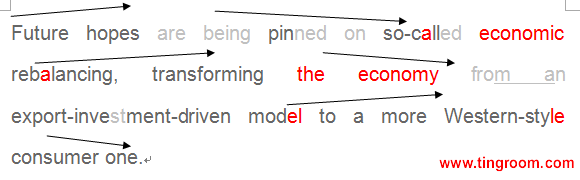 模仿句子:Future hopes are being pinned on so-called economic rebalancing, transforming the economy from an export-investment-driven model to a more Western-style consumer one.