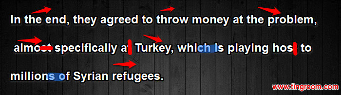 模仿句子:In the end, they agreed to throw money at the problem, almost specifically at Turkey, which is playing host to millions of Syrian refugees.
