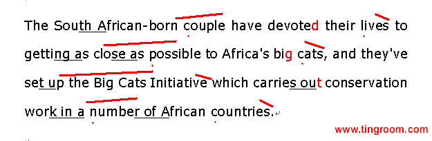 The South African-born couple have devoted1 their lives to getting as close as possible to Africa's big cats, and they've set up the Big Cats Initiative which carries out conservation work in a number of African countries.