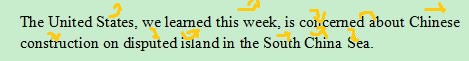 模仿句子The United States, we learned this week, is concerned about Chinese construction on disputed island in the South China Sea.