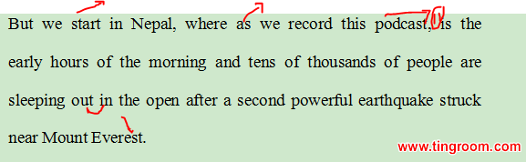 首先我们来关注尼泊尔——本期Podcast正是在尼泊尔当地录制。现在正是清晨,在经历了珠穆朗玛峰附近爆发的第二次强震后,数万人睡在露天的室外区域。
