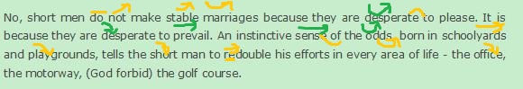 No, short men do not make stable marriages because they are desperate to please. It is because they are desperate to prevail. An instinctive1 sense of the odds2, born in schoolyards and playgrounds, tells the short man to redouble his efforts in every area of life - the office, the motorway3, (God forbid) the golf course.