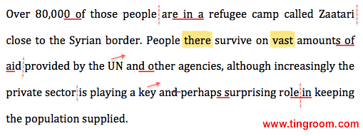 译文:在叙利亚边境附近,有8万多人住在名叫扎塔里的难民营里。在那里,人们大量靠联合国和其他机构的救济生活,不过私营部门在保证人民供给的层面上所发挥的作用越来越重要,甚至是出人意料。