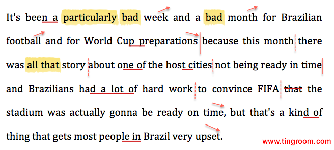 模仿文本: It's been a particularly bad week and a bad month for Brazilian football and for World Cup preparations because this month there was all that story about one of the host cities not being ready in time and Brazilians had a lot of hard work to convince1 FIFA that the stadium was actually gonna be ready on time, but that's a kind of thing that gets most people in Brazil very upset.