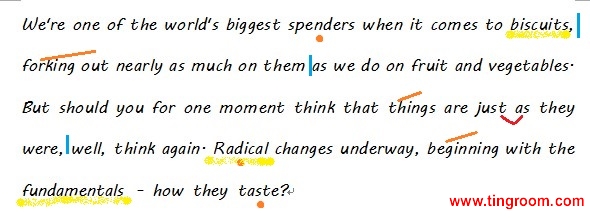模仿文本: We're one of the world's biggest spenders when it comes to biscuits, forking out nearly as much on them as we do on fruit and vegetables. But should you for one moment think that things are just as they were, well, think again. Radical1 changes underway, beginning with the fundamentals2 - how they taste?