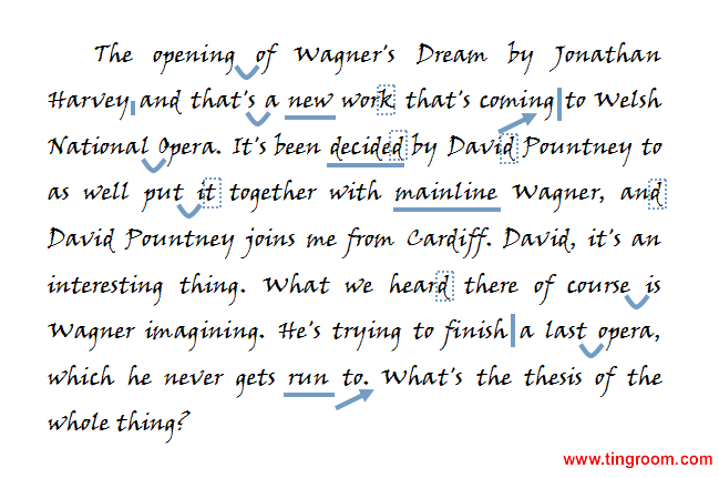(刚才听到的是)乔纳森•哈维为《瓦格纳的梦想》作的开场曲。这部歌剧即将在威尔士国家歌剧院与观众见面。这是大卫•庞特尼的主意,他想把其与传统的瓦格纳结合。坐在我身旁的是从加的夫远道而来的大卫。大卫,这件事很有趣。我们刚刚听到的是瓦格纳在幻想自己完成最后一场歌剧。但在现实中他无法完成。这个歌剧的主题是什么?
