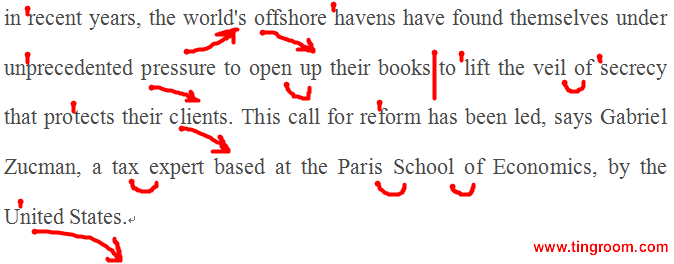 译文: 近年来,世界各地的离岸避税港受到了前所未有的压力,他们被迫将一直保护客户的秘密公之于众。加布里埃尔·泽克曼认为美国引领的这项改革呼之欲出,他是巴黎经济学院税务专家。