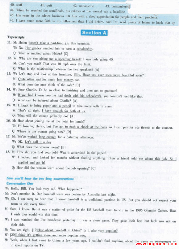 大学英语四级考试巅峰听力MP3与字幕文本下载 Track 01