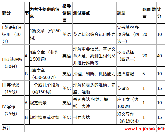 试题分四部分,共48题,包括英语知识运用、阅读理解、英译汉和写作。