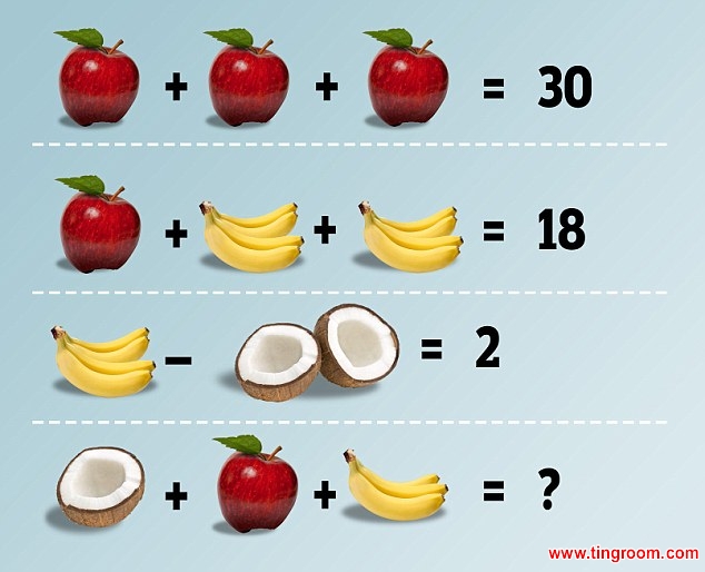 The apples, bananas and coconuts2 conundrum3 is being widely shared online, leaving some puzzle solvers perplexed4.