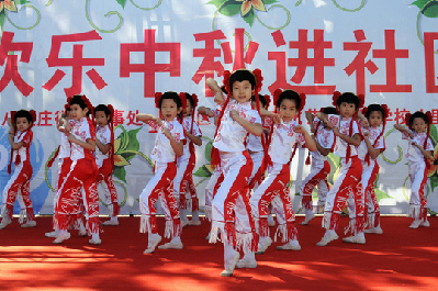 Children dance to celebrate the Mid-Autumn Festival at a square in Beijing, Sept 22, 2010.
