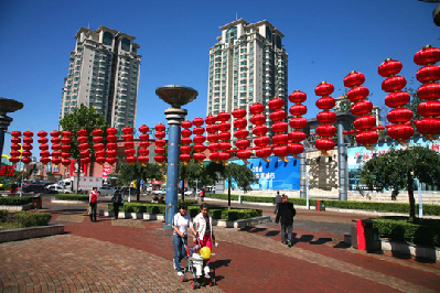 Red lanterns decorate a square in Beijing Wednesday in celebration of the Mid-Autumn Festival, which falls on the 15th day of the eighth month on the lunar calendar, Sept 22 this year.