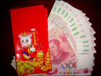 或者是red packets (cash wrapped up in red paper, symbolize fortune and wealth in the coming