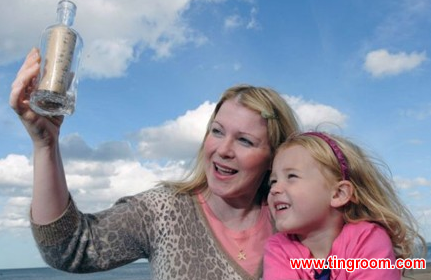 41岁的Nicola MacFarlan和4岁的女儿Lucy 来自爱丁堡附近波多贝罗,当时她们正在清洁波多贝罗海滩,突然发现这个藏在沙子里的玻璃瓶,瓶子里装有一封中文写的信。