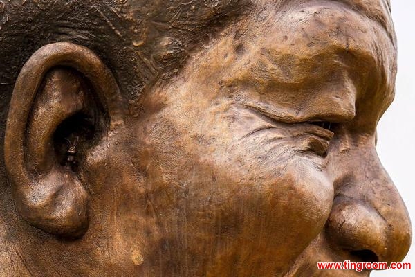 | A sculpture of a buuny has been discovered in the ear of a nine-meter bronze statue of Nelson Mandela. Artists say they added the rabbit as a personal stamp after the South African government stopped them from engraving their signatures on the statue. (Photo by gmw.cn) |
