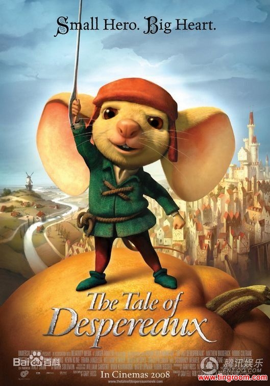 《浪漫的老鼠》是根据美国著名儿童文学家凯特·迪卡米罗的同名小说改编。影片讲述了一个自认是“绅士”的小老鼠的冒险故事。影片由《鼠国流浪记》(FlushedAway)的导演山姆·菲尔(SamFell)指导,延续他对老鼠题材的一贯热爱。影片由环球影业发行,上映时间为2008年12月19日。这是一部适宜小孩子观看的、具有独特魅力的经典电影。