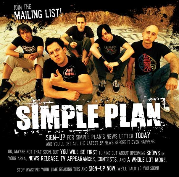 简单计划(Simple Plan)。是一支于1999年在加拿大魁北克地区成立的流行龐克樂團。这个乐團已发行两张专辑:《No Pads2 No Helmets3 Just Balls》和《Still Not Getting Any》,兩張現場演奏專輯:《Live In Japan》and《MTV Hard Rock Live》(2005年)。五名團员都是加拿大的法国后裔。