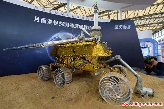| Visitors view the model of a lunar probe during the 15th China International Industry Fair in Shanghai, east China, Nov. 5, 2013. (Xinhua/Lai Xinlin) |