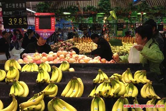 | People select fruit in a supermarket in Shanghai, east China, Dec. 8, 2013. China's consumer price index (CPI), a main gauge of inflation, grew 3 percent year on year in November, down from the 3.2 percent recorded in October, the National Bureau of Statistics (NBS) said on Monday. (Xinhua/Yang Shichao) |