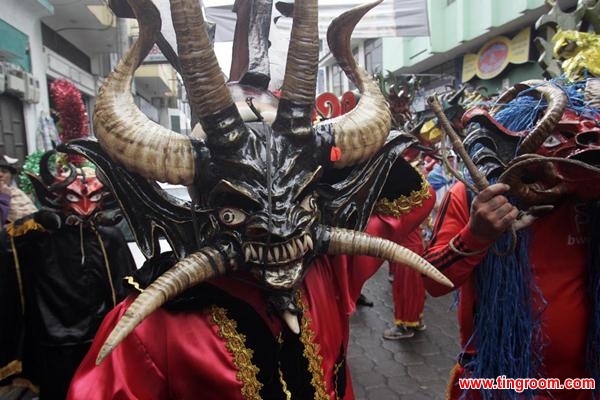 | People celebrate La Diablada de Pillaro in Ecuador. The ritual began when indigenous people first dressed up as devils to encourage uprisings against the Spanish. |