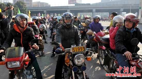 The Spring Festival travel rush is usually characterized1 by long ticket lines and packed train cars. But some people are opting2 for another route by riding home on motorcycles.
