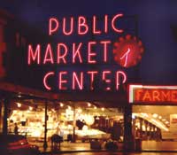 始建于1907年的帕克市场, 最初是西雅图农民和渔夫们自发的农贸交易市场。1970年,反对政府拆除旧市场的市民们不但保住了这座历史性的建筑,还捐款将帕克市场在原地重新翻修,将旧有的帆布顶改成现在坚固的屋顶,使帕克市场焕然一新。现在,这里已经成为西雅图的标志之一,它的鲜明的"Public Market Center"招牌就在本部电影中出现过。