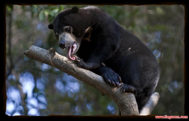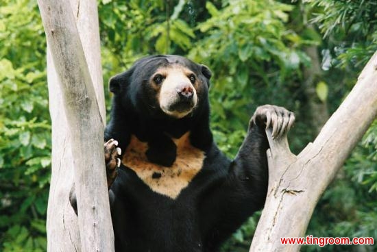 文化链接:马来熊别名狗熊、太阳熊,属于熊科。它是熊类中体型最小的种类,一般体长100厘米左右,体重约50千克。体态伶俐、矫捷,坐着的时候就象一只肥胖的小狗。马来熊栖息于热带、亚热带雨林、季雨林中,主要分布在印度尼西亚、马来半岛、缅甸等地。1972年在中国云南南部边境山地首次发现,数量极少。
