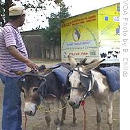 | Yohannes Gebregiorgis and his donkeys park the mobile library |