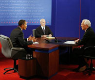 | Barack Obama and John McCain with CBS moderator Bob Schieffer during the third presidential debate |