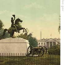 | A statue of Andrew Jackson across from the White House |