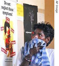 | A tuberculosis patient looks at a TB awareness2 poster in a 2007 photo |