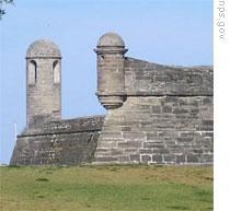 You pass businesses, eating places, stores and hotels. And then you see it, just as the road turns to the left. It looks like a hill of rock rising out of the ground. It seems fierce. And it looks very foreign. There can be no mistake about what it is. It is a very old military base -- the kind that is called a fort3. It looks like it should be in some European country, not on the coast of Florida.