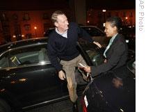 | G.M. chief executive Rick Wagoner steps out of the Chevrolet Malibu hybrid3 car in which he rode to Washington |