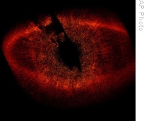 Mister Kalas says Fomalhaut b orbits its star at the inside edge of a huge flattened9 ring of ice and dust. This disk is similar to the Kuiper Belt, which surrounds our own solar system.