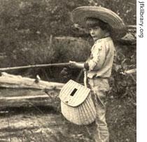 | Young Ernest Hemingway fishing in Michigan in 1904 |