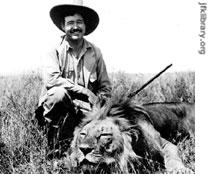 Hemingway also traveled to Africa. He had been asked to write a series of reports about African hunting. He said: "Hunting in Africa is the kind of hunting I like. No riding in cars, just simple walking and feeling the grass under my feet. "