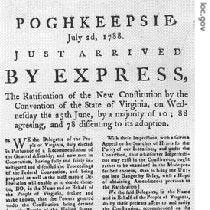 Federalists in Virginia were proud. They thought their state was the ninth to ratify, the one that made the Constitution the law of the land. But they soon learned that New Hampshire had ratified a few days earlier. Virginia was number ten. That left three states: North Carolina, Rhode Island, and New York.