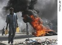 | A burning barricade1 in Port-au-Prince, Haiti |