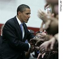 | Barack Obama shakes hands with supporters Wednesday in Indiana |