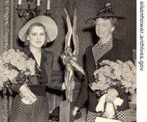 | Jackie Cochran receives the Harmon Trophy from Eleanor Roosevelt on June 15, 1939 |