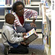 | A mother and son choose books at a library in Richmond, Virginia |