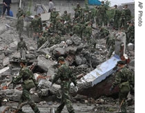 So far, China has received international aid worth more than two hundred million dollars. But officials say the country still needs tools, equipment, temporary shelters and medicine. The Chinese government made a rare public appeal Thursday for tools used for digging and moving wreckage. Some rescuers have been digging through building wreckage with only their hands.