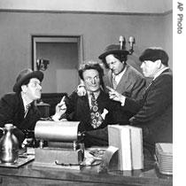 | Emil Sitka, second from left, is shown in an undated studio photo with the Three Stooges, from left, Shemp Howard, Larry Fine and Moe Howard |