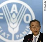U.N. Secretary General Ban Ki-moon said food production needs to increase fifty percent by two thousand thirty to meet rising demand. The cost, he said, could top fifteen to twenty billion dollars a year over a number of years.