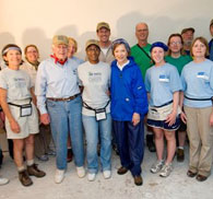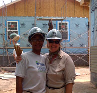 The building teams included between eight and twenty volunteers. Miz Brummett, who is forty-five, did not realize how hard building a house would be. Like many of us at VOA, she sits at a computer most of the day and does not get a lot of exercise. During her Habitat experience, she says, "I found muscles in my body that I never knew existed."